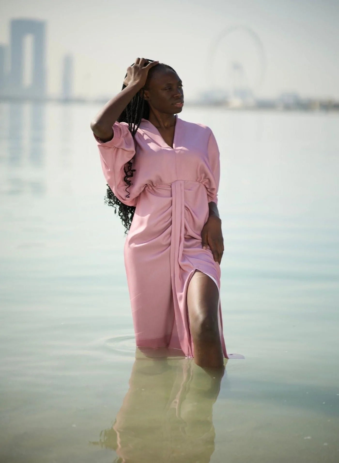 The Bali dress can be slipped on for beach party and styled up for dinner under the stars. Whipped up from lightweight crepe silk fabric with a flattering wrap construction, uncomplicated design and a knotted front with a slit.