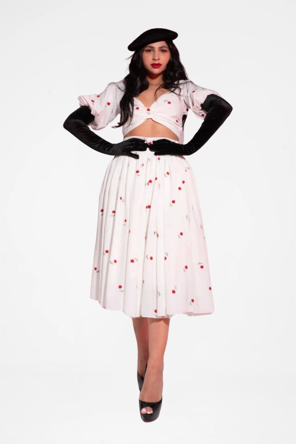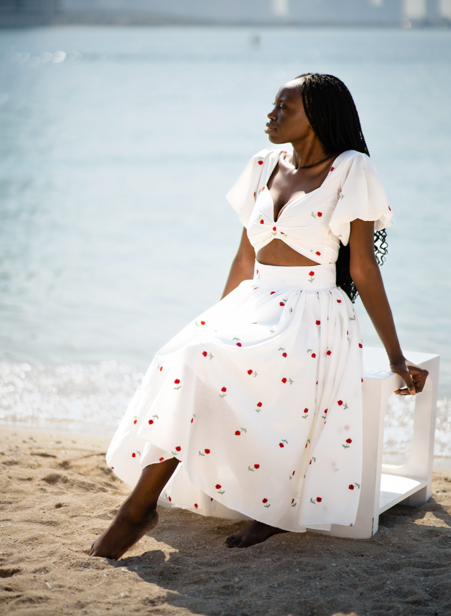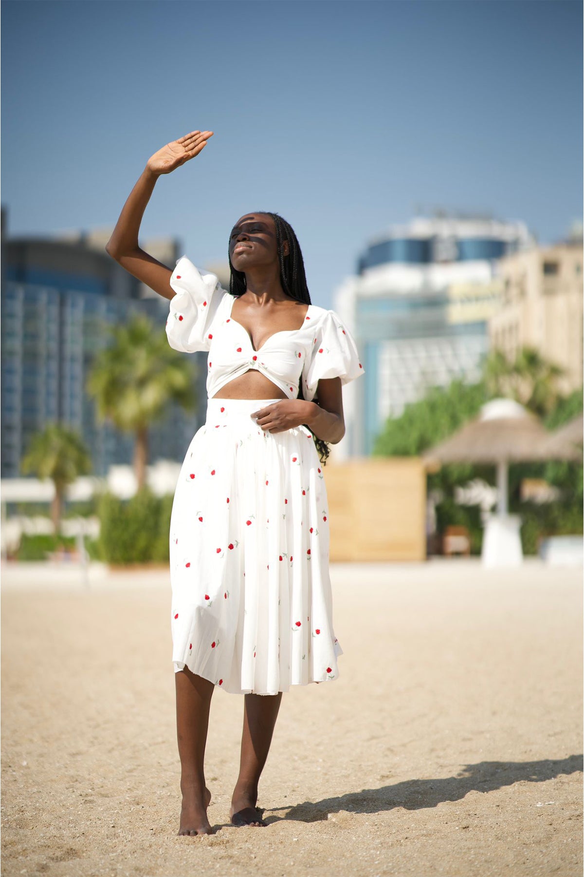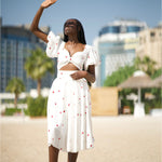 This beautiful Top and skirt have it all. cut from a cotton-rich fabric, the cropped top captures Rinkel's on the front, cut from a cotton-rich fabric. The skirt features Rinkel's details at the front and falls to a chic ankle-length hemline. A true Boho inspiration with an effortlessly feminine and a timeless silhouette.