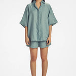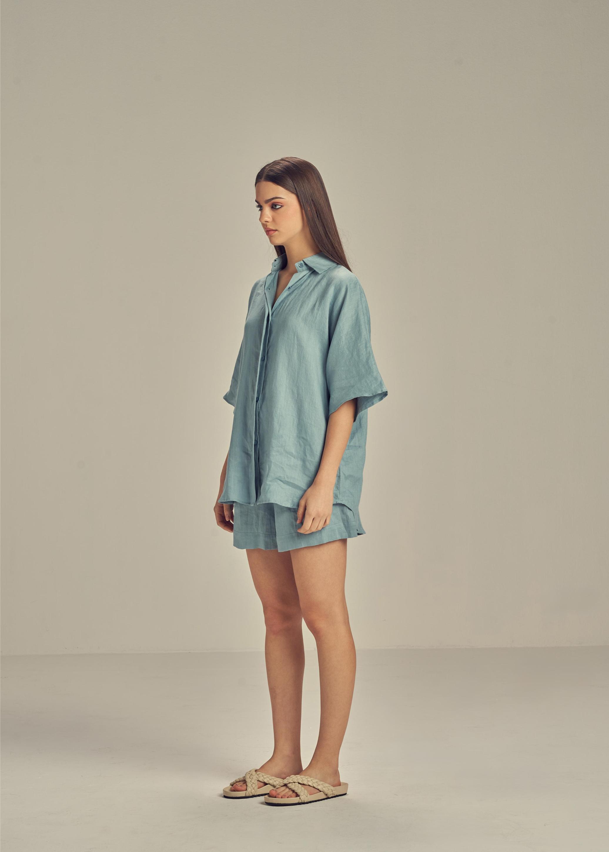 Shane Linen has a penchant for relaxed silhouettes with a beach resort vibe. Designed from pure linen, the oversized silhouette is adorned with a loose fit known to the brand. Perfect for the city, but also as a resort outfit. ideal for the city, but also as a resort outfit.