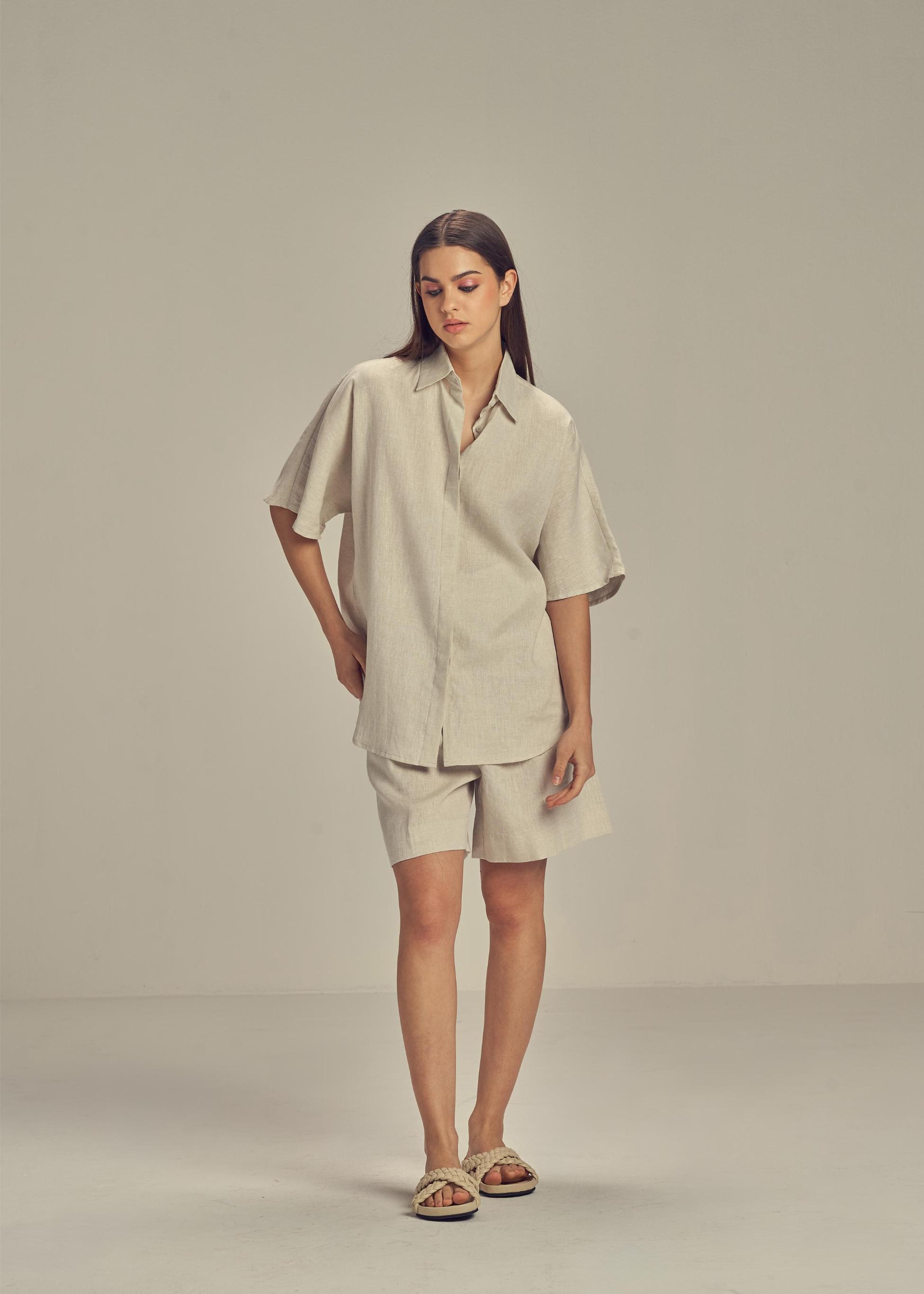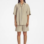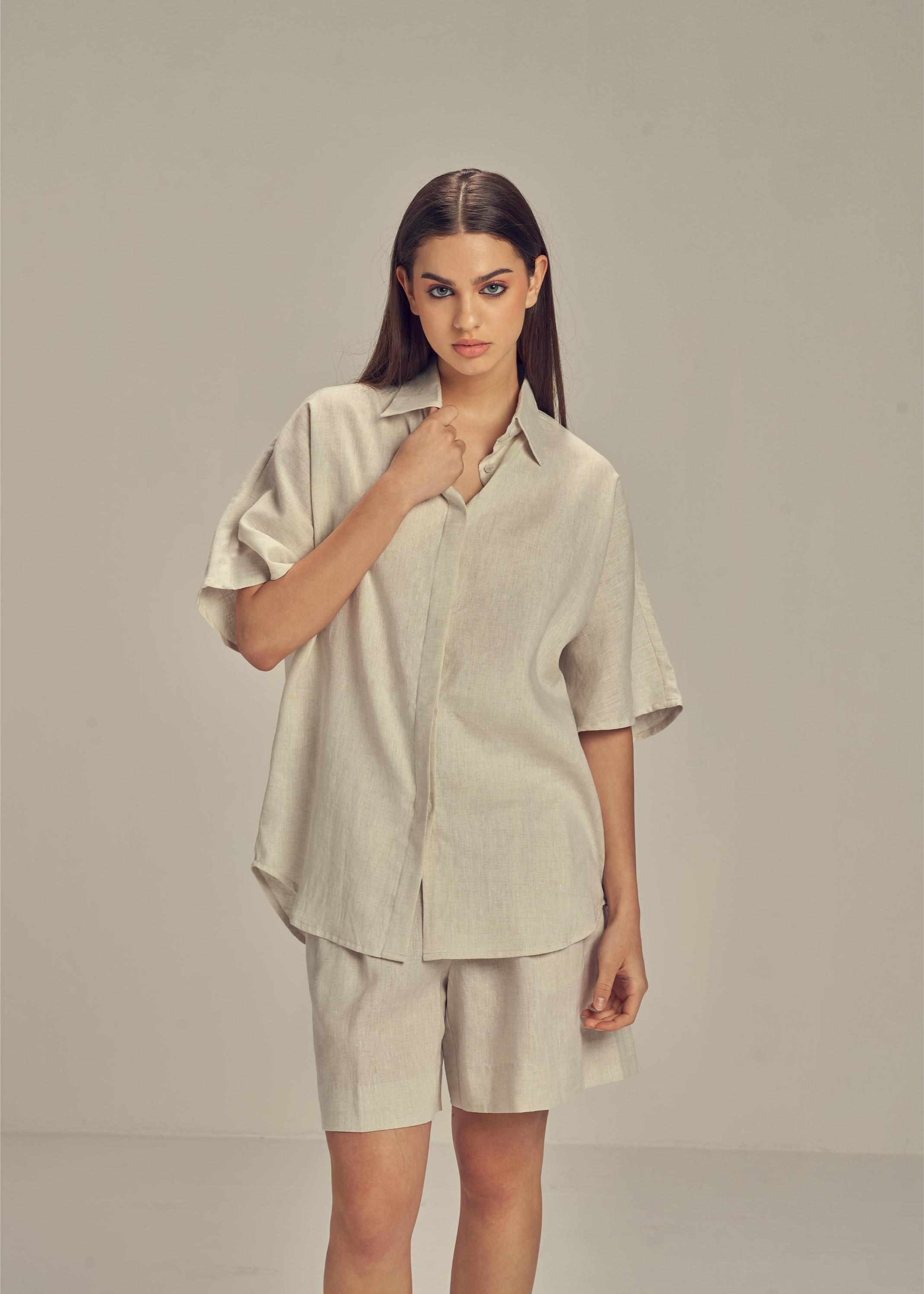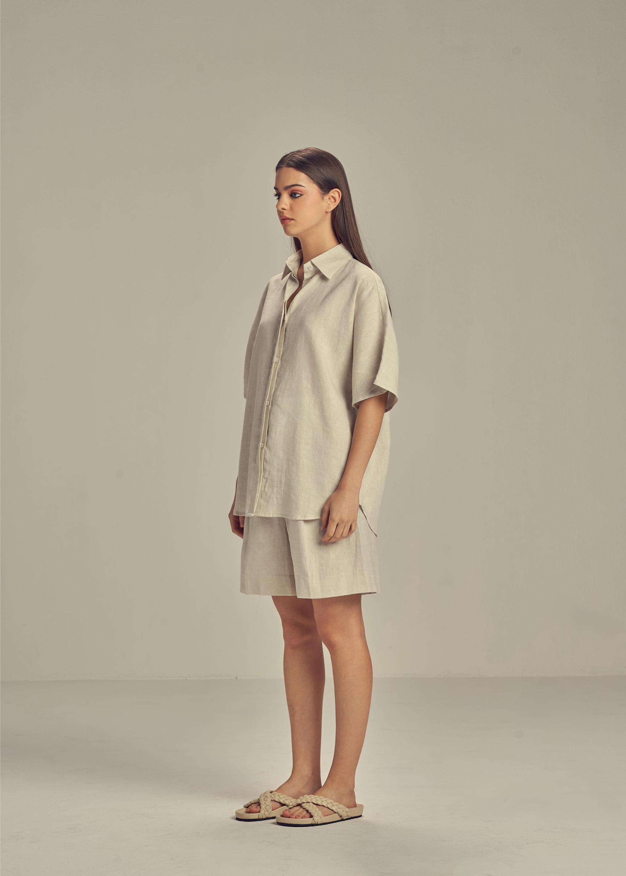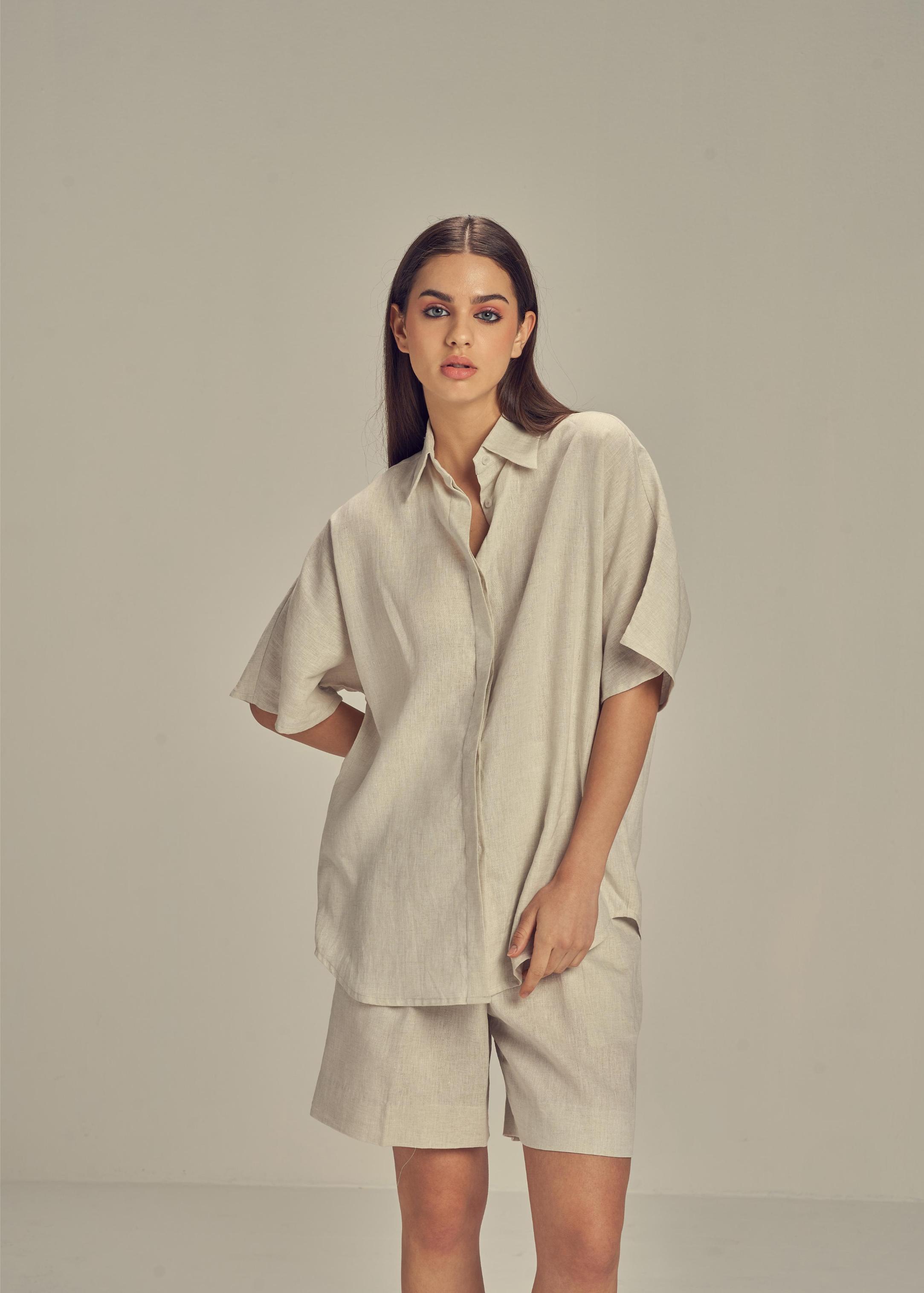 Shane Linen has a penchant for relaxed silhouettes with a beach resort vibe. Designed from pure linen, the oversized silhouette is adorned with a loose fit known to the brand. Perfect for the city, but also as a resort outfit. ideal for the city, but also as a resort outfit.