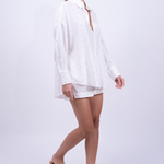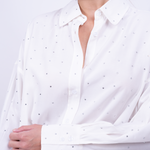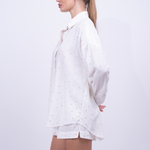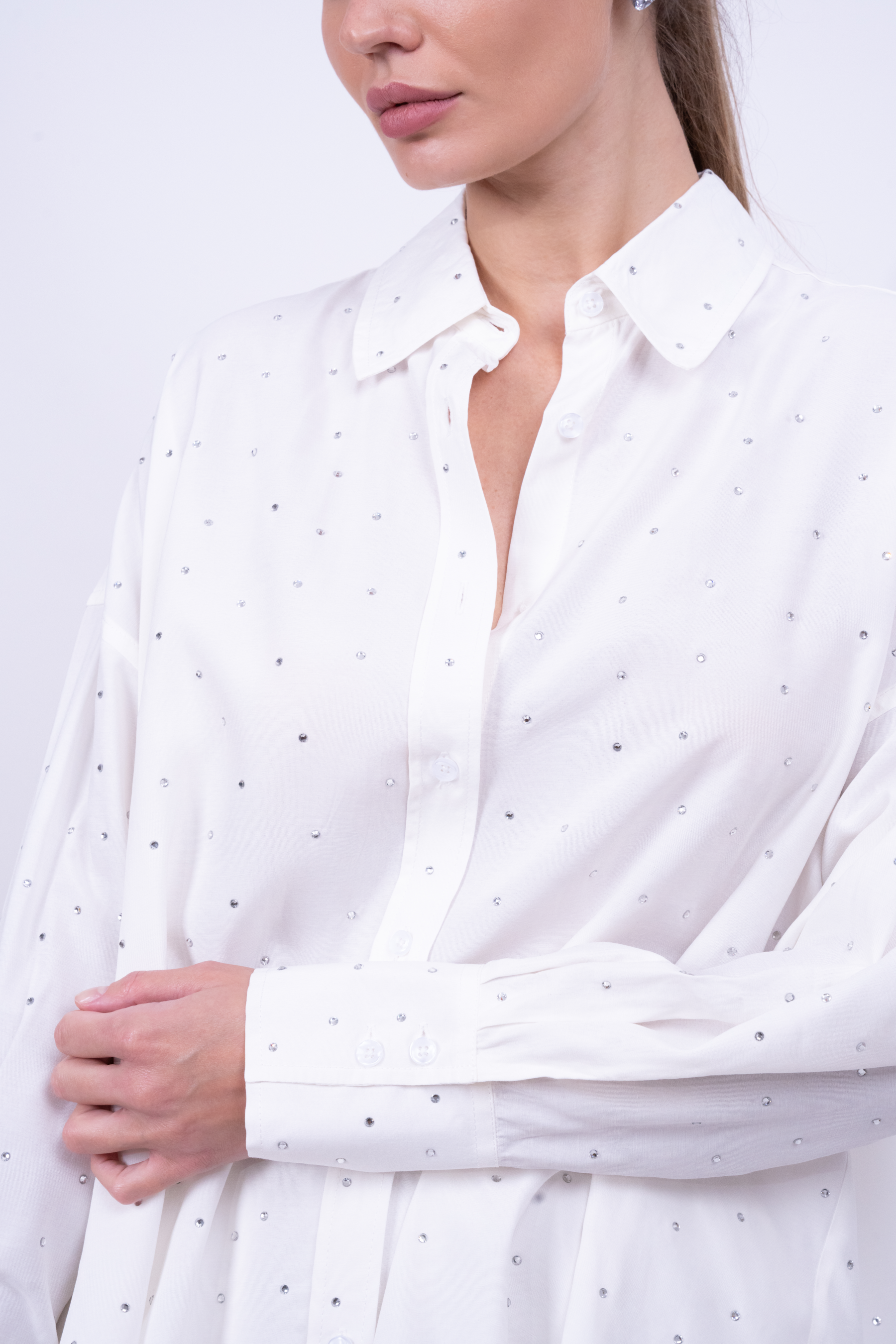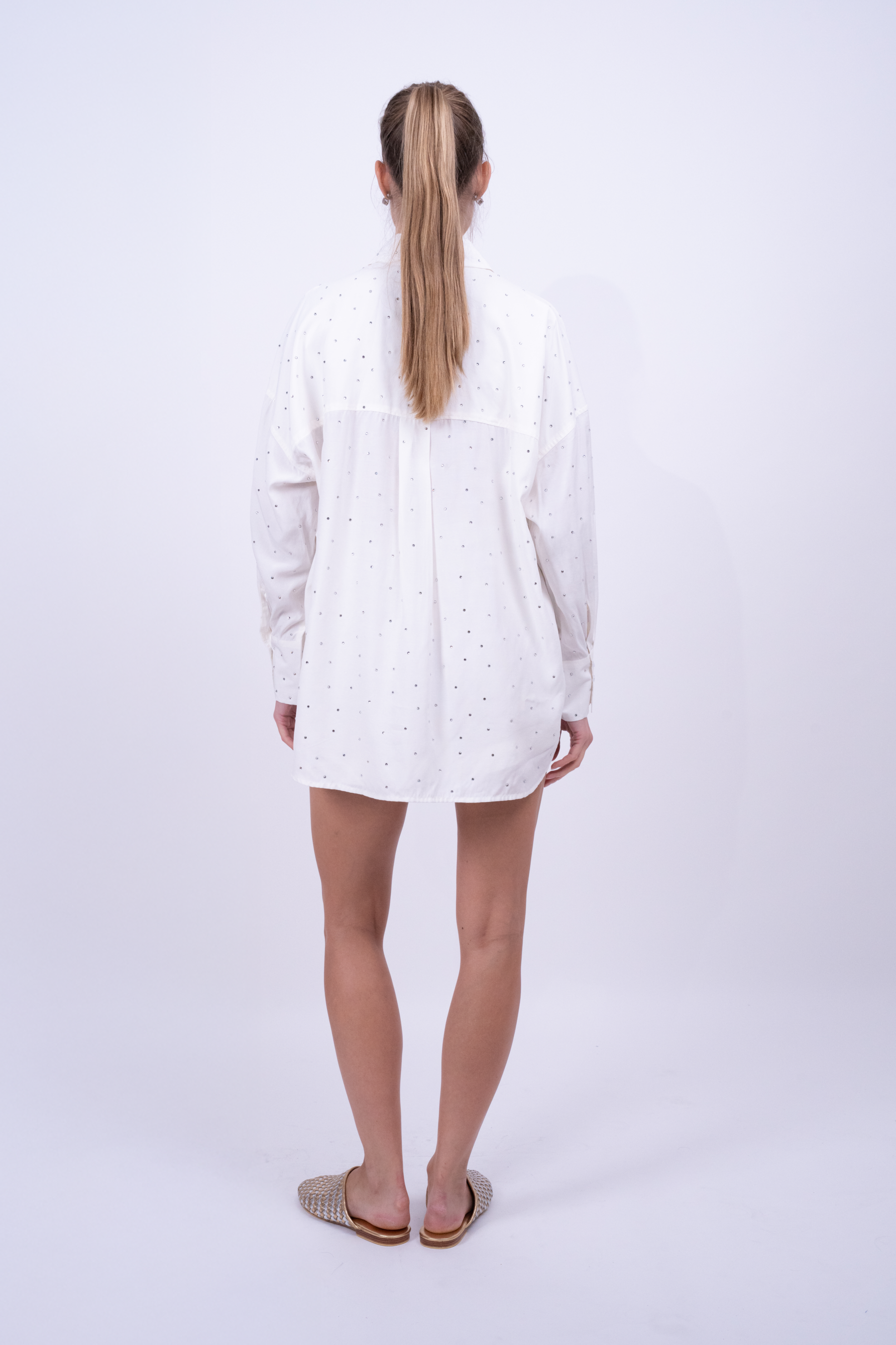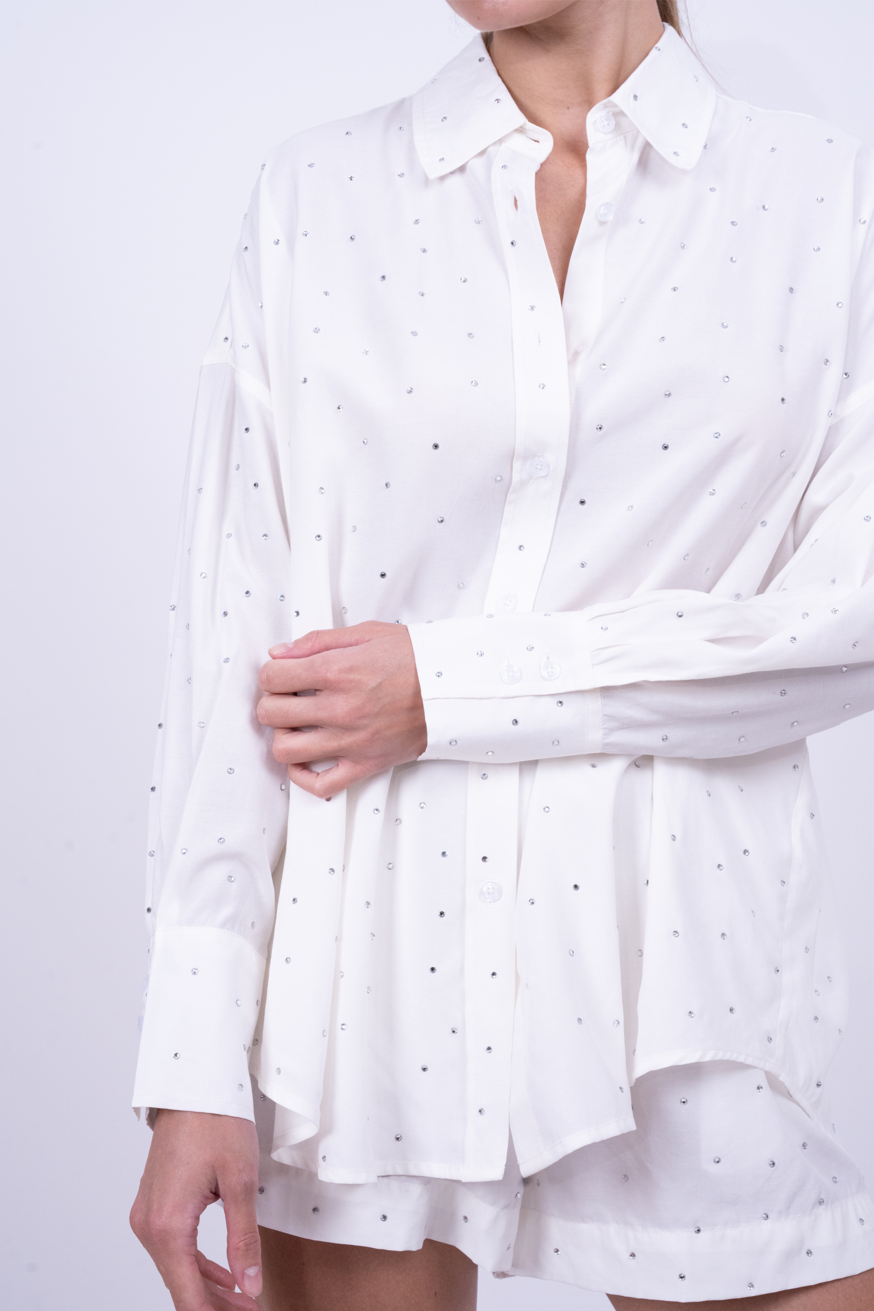 The Aqua Crystal set exudes glamour and sophistication. With its stunning crystal that brilliantly reflects light from every angle. Its design effortlessly transitions from casual to couture, ensuring you always look your best. Whether you wear the entire set or match the shirt with jeans for a chic, laid-back vibe, you'll turn heads and command attention.