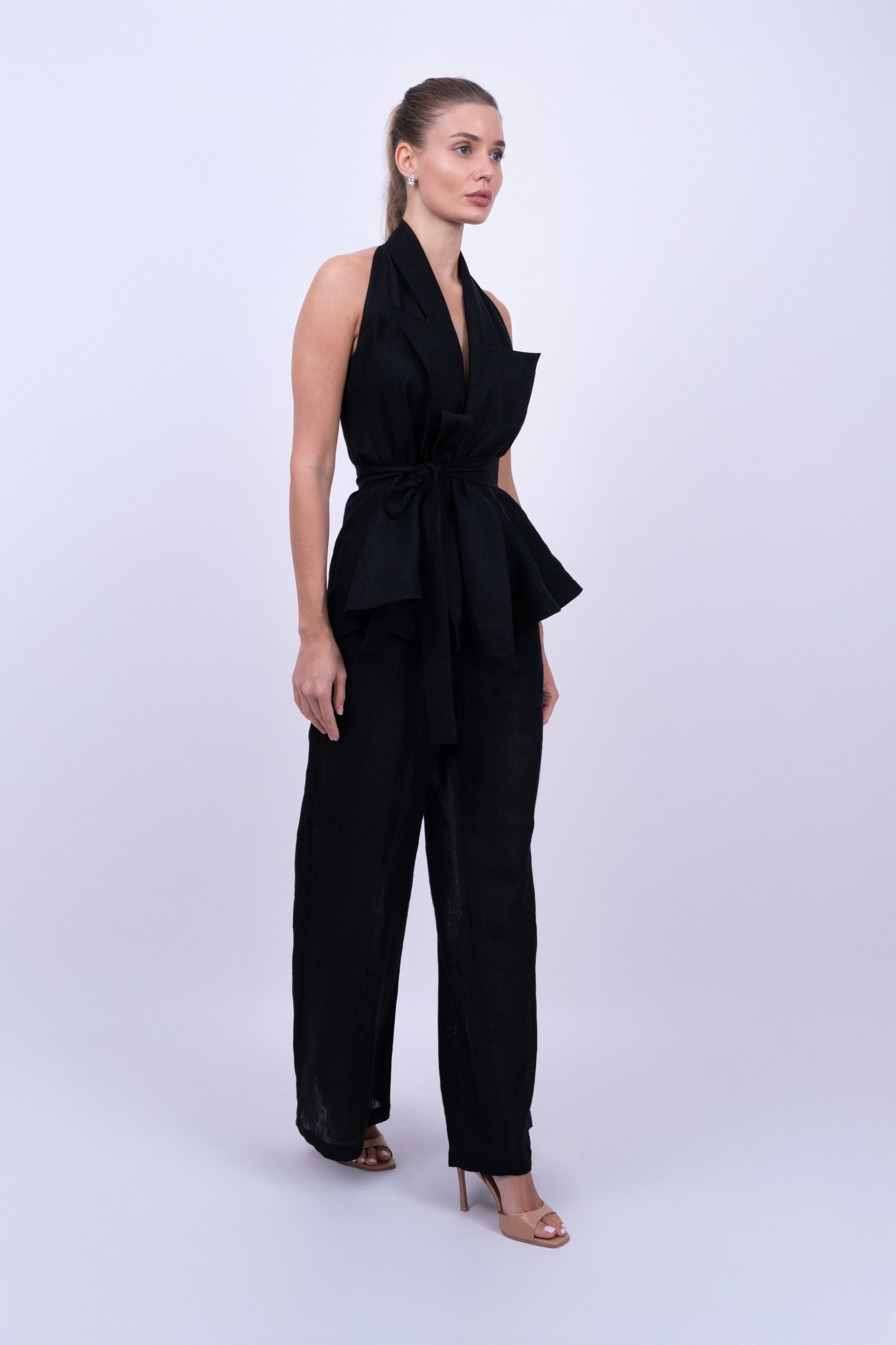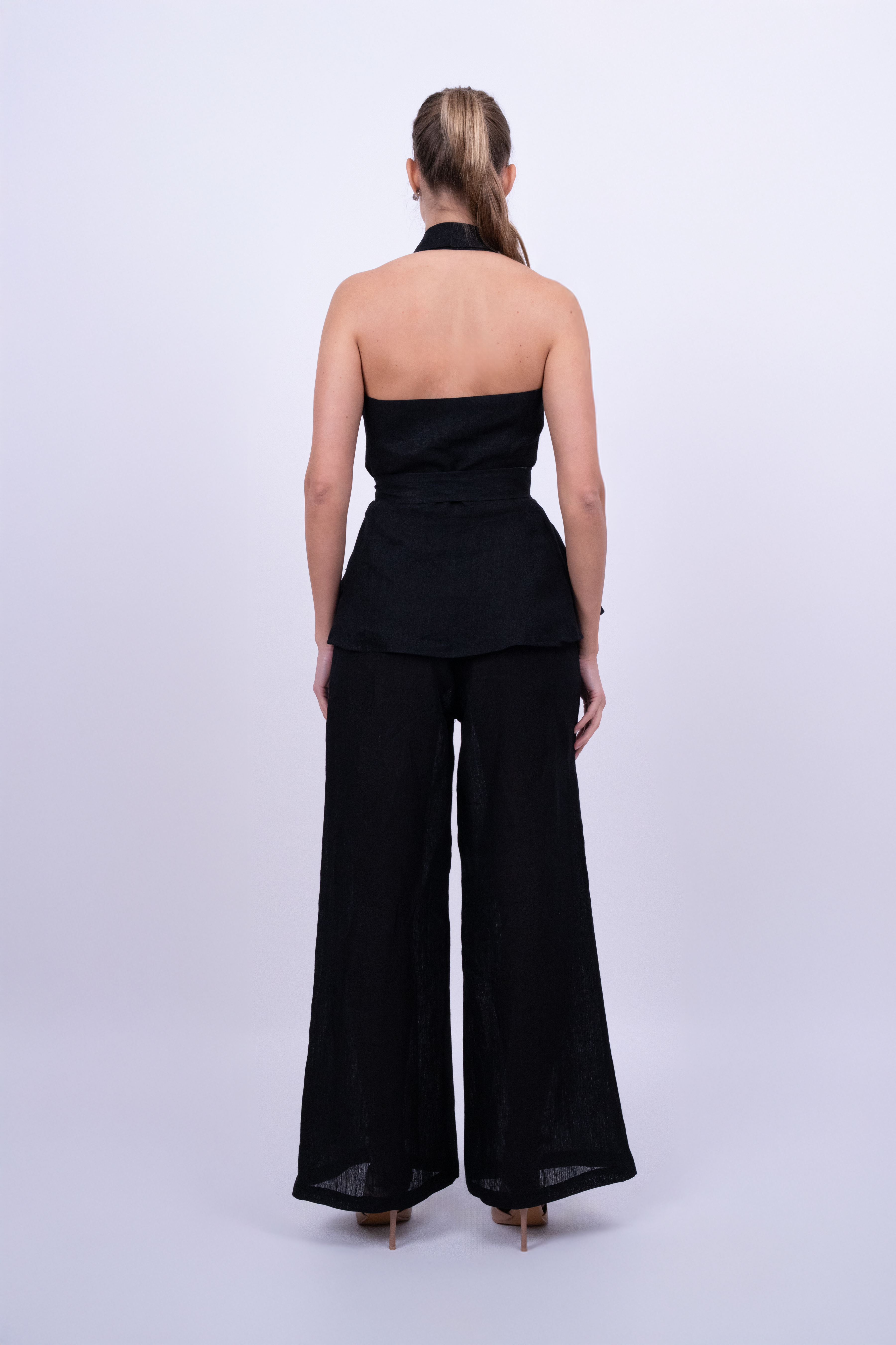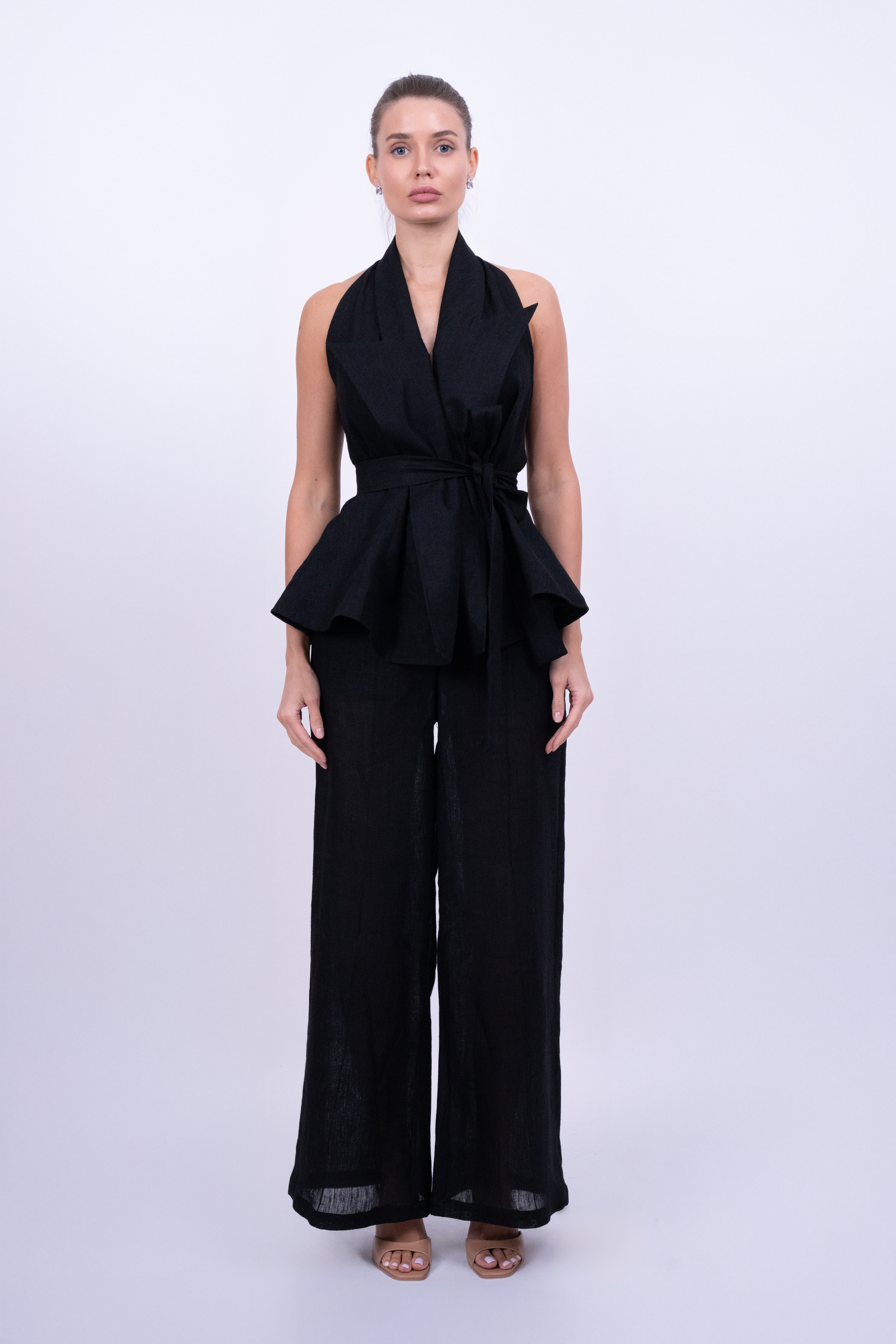 The Jackline Linen Set keeps it simple in front with a fun twist at the back. Made from soft linen, the top has a crossed front and an open back. The Pants is high-waisted and wide leg fit, or pair it with a long skirt for stylish dinners, rooftop parties, or art trips.