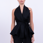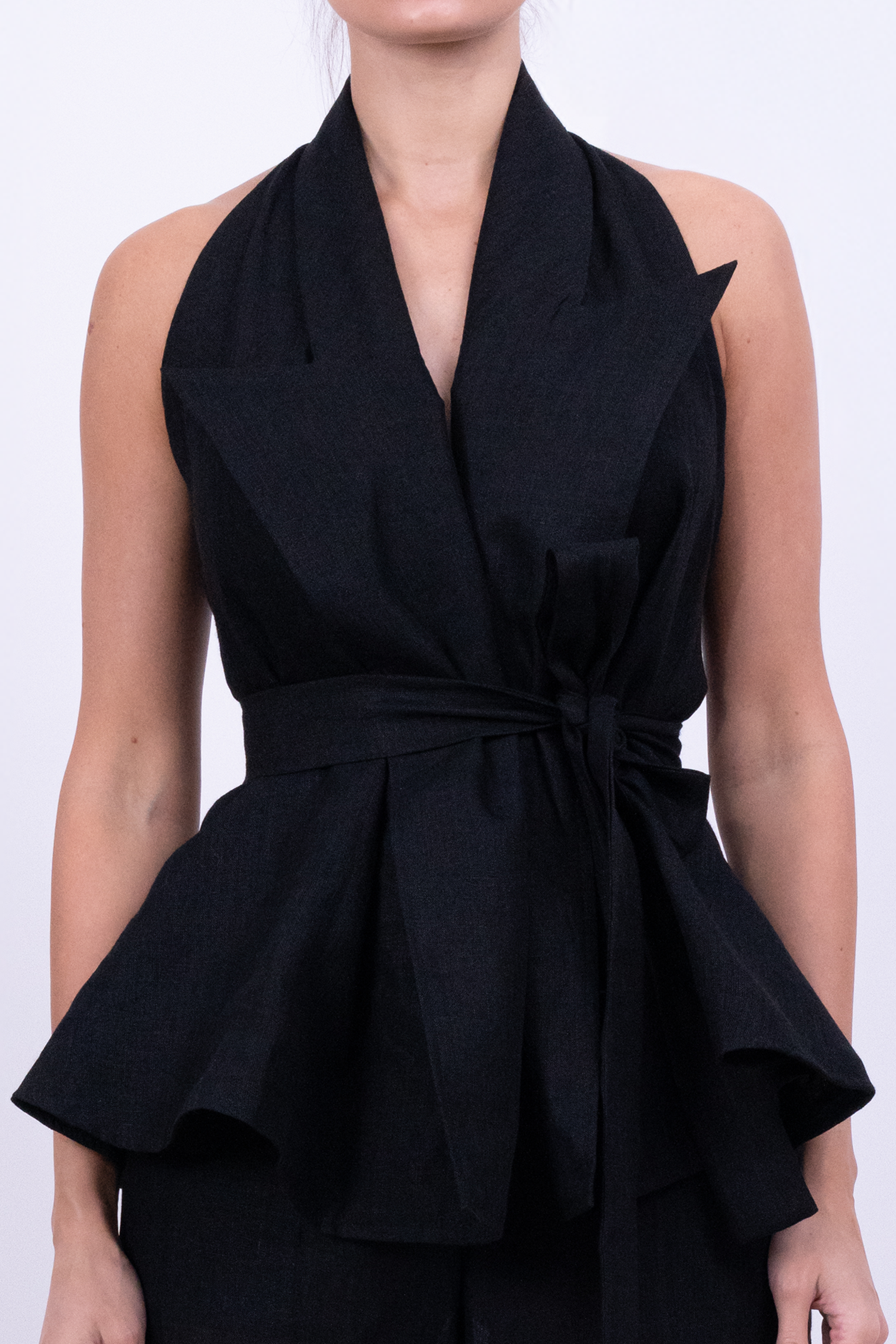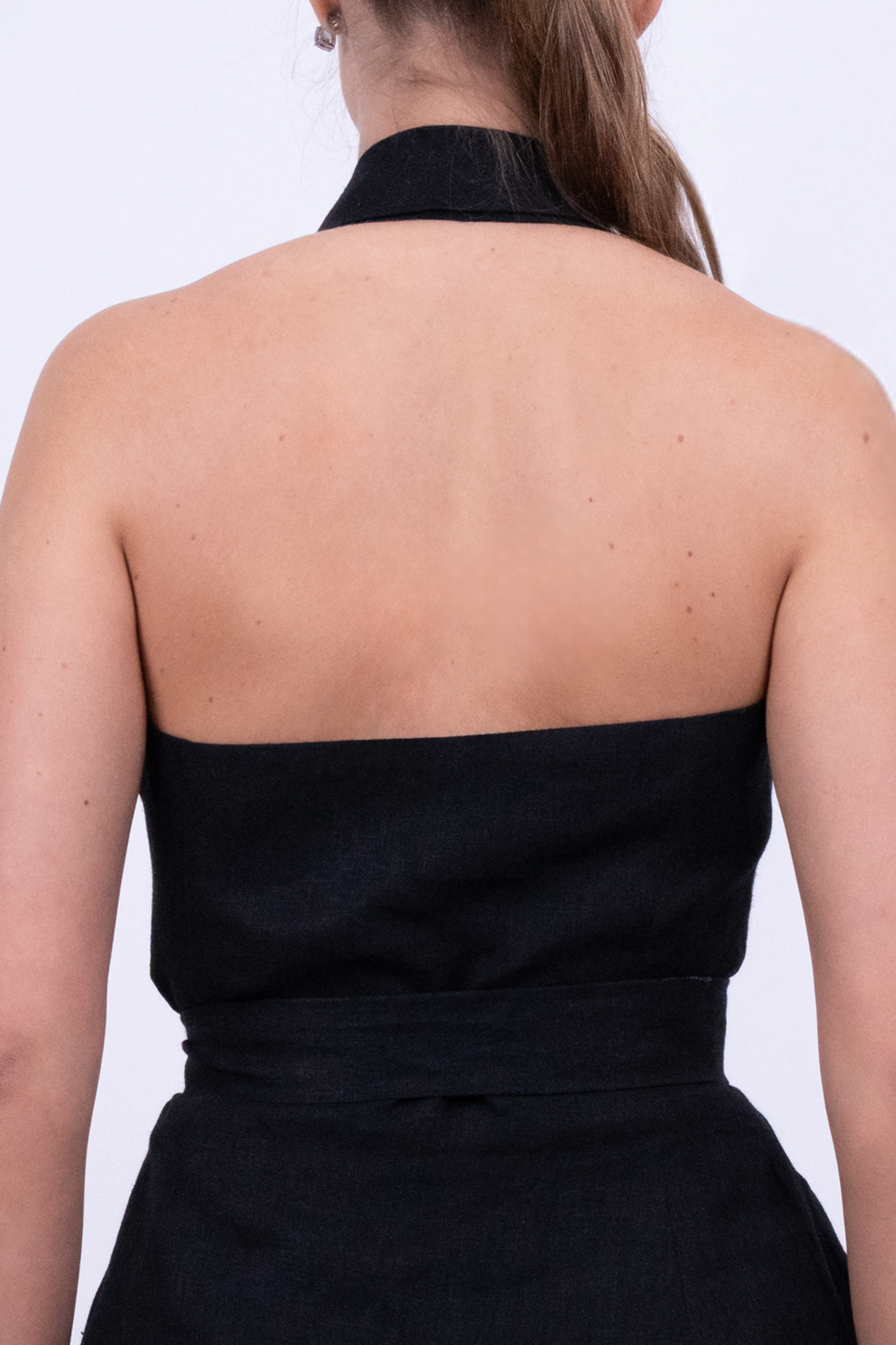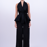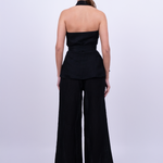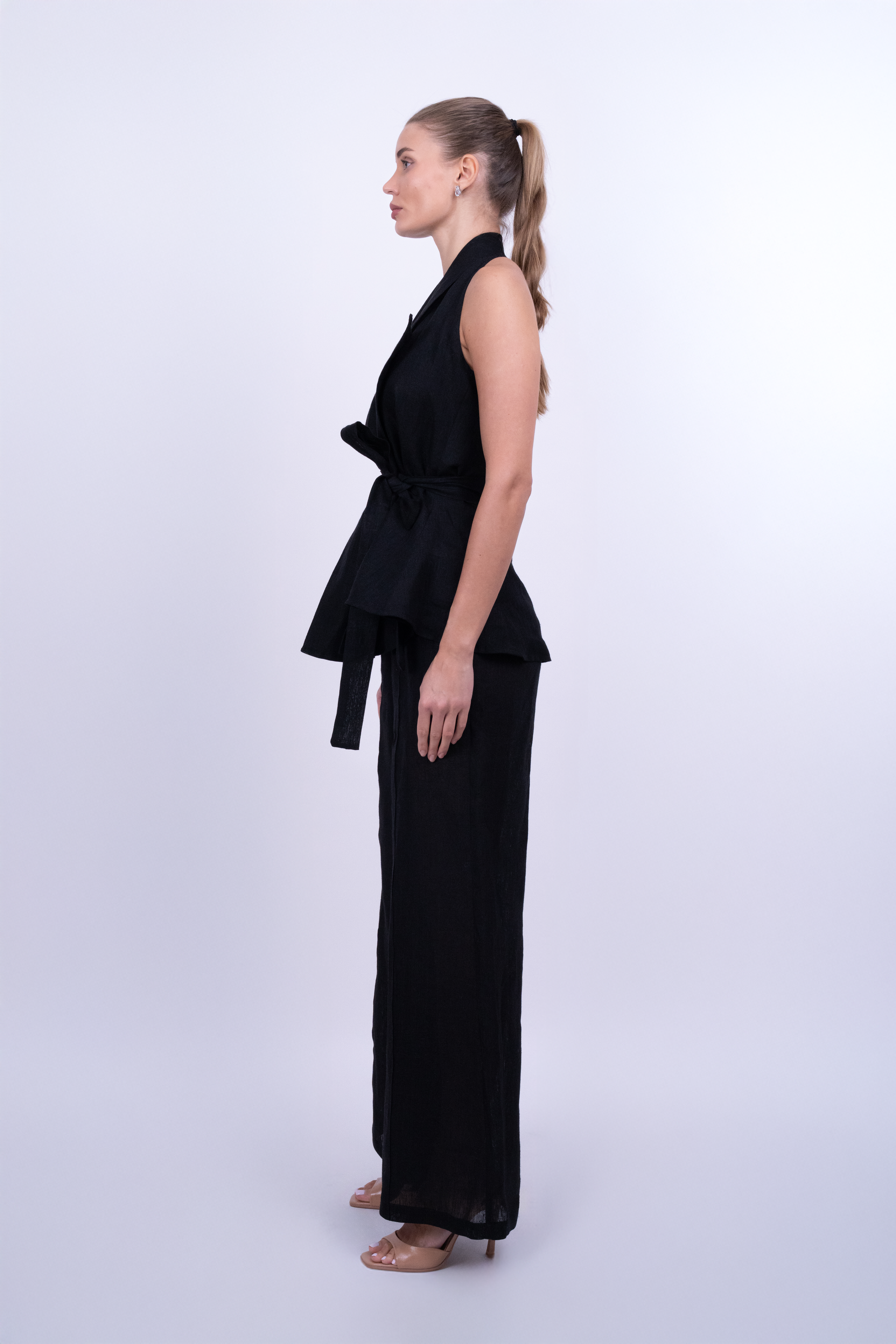The Jackline Linen Set keeps it simple in front with a fun twist at the back. Made from soft linen, the top has a crossed front and an open back. The Pants is high-waisted and wide leg fit, or pair it with a long skirt for stylish dinners, rooftop parties, or art trips.