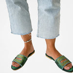 Look your casual weekend best right down to your toes with these eye-catching python-print leather slide Sandals. They are an effortlessly stylish summer staple. Cecilehob innovative design brings you unique cut-out details.