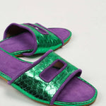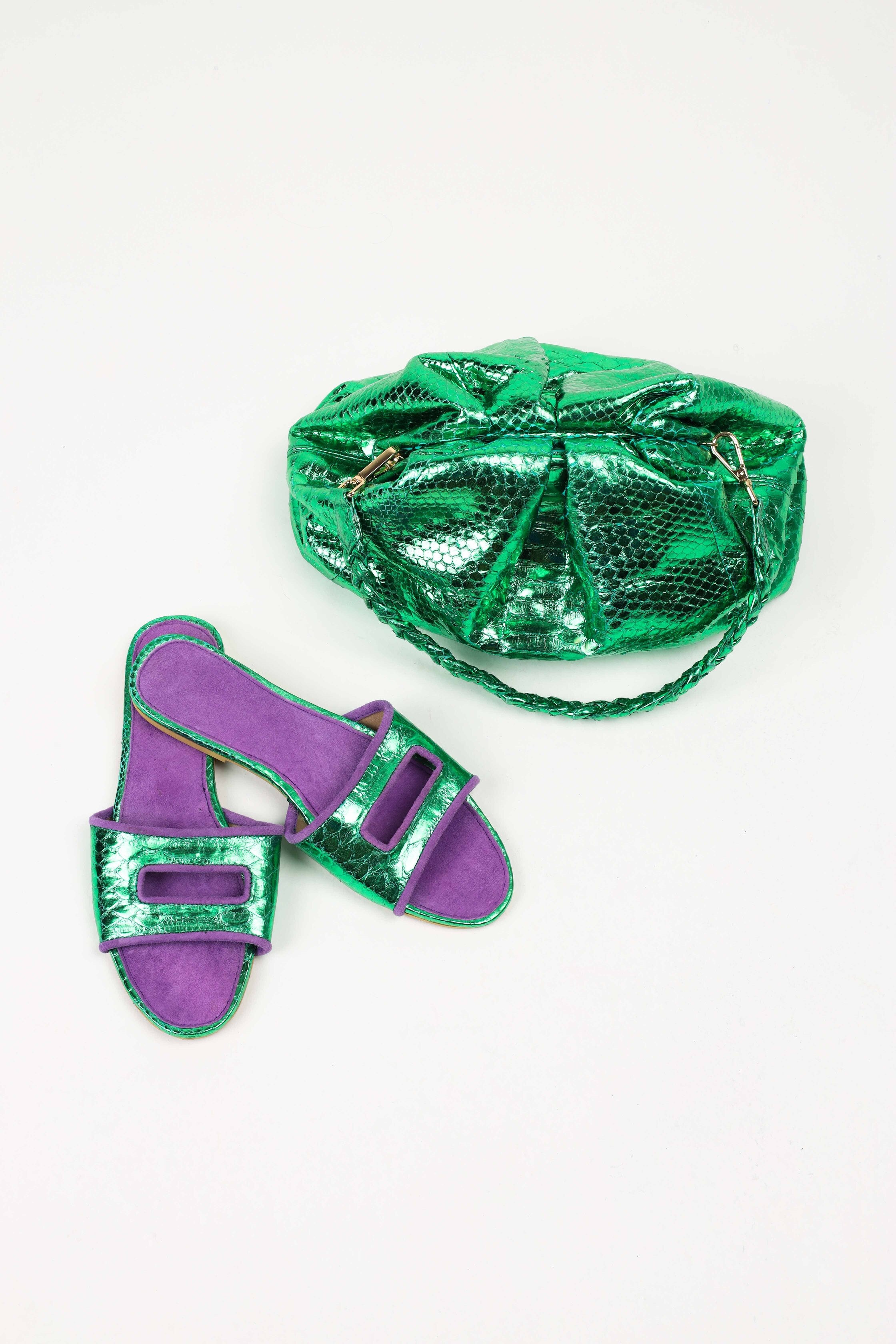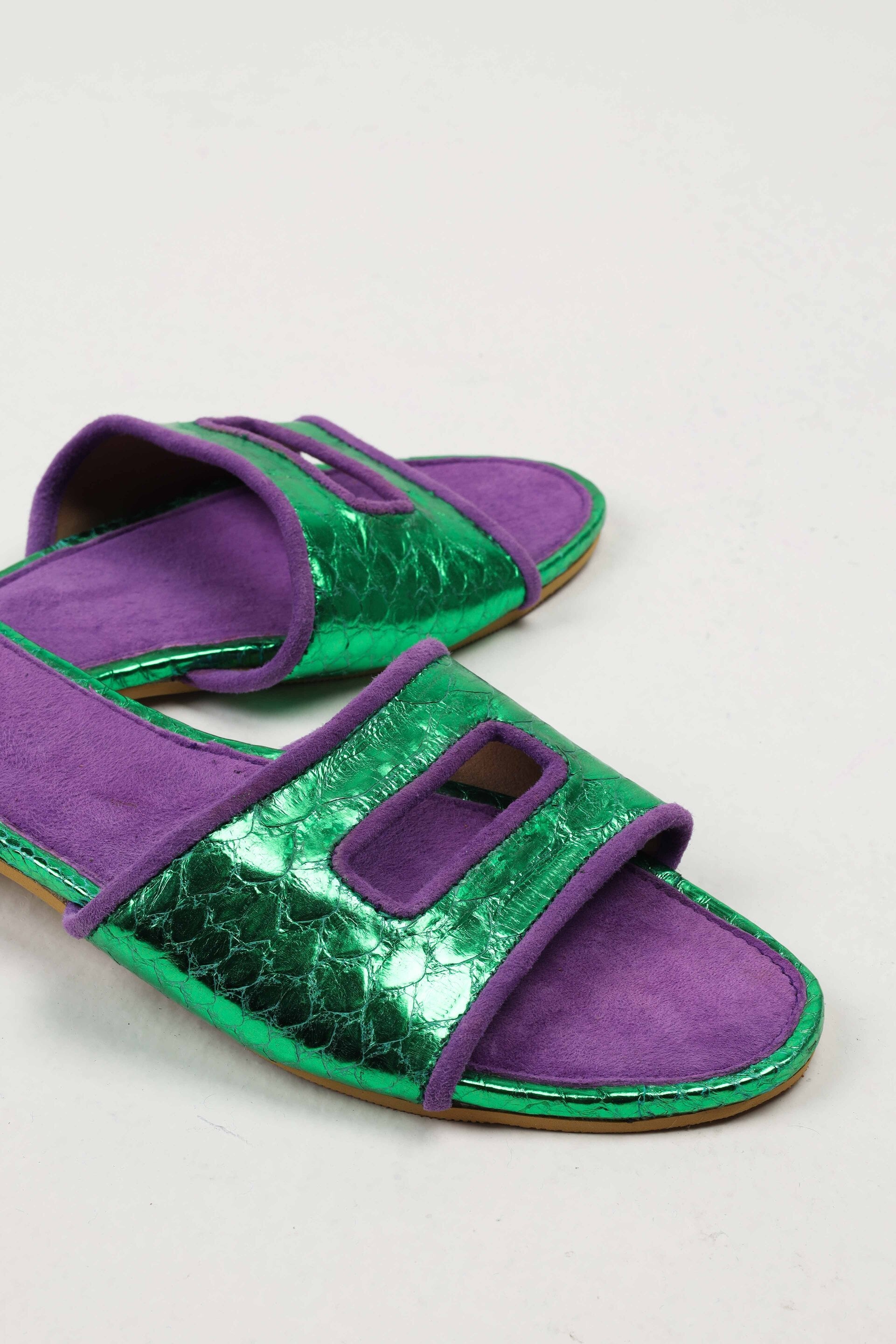 Look your casual weekend best right down to your toes with these eye-catching python-print leather slide Sandals. They are an effortlessly stylish summer staple. Cecilehob's innovative design brings you unique cut-out details.