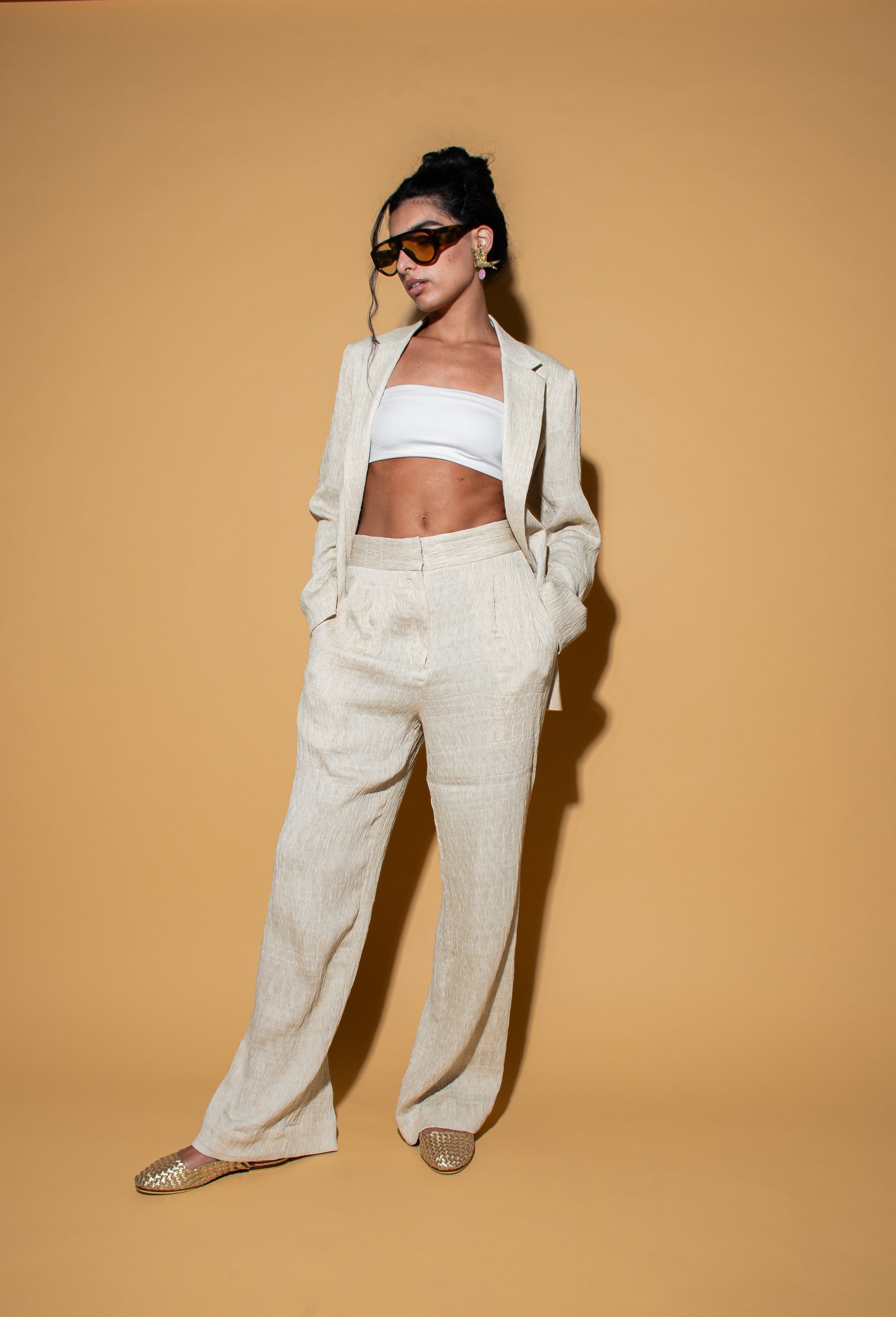 The "Tenere" Suit is a huge this season and such an easy way to tap into the trend. Both functional and chic, the luxurious crashed silk-blend and flattering flared-leg pants are complemented by a stunning oversized blazer, making it a versatile yet elegant choice. Dress it up with heels or dress it down with sneakers and a casual tee.