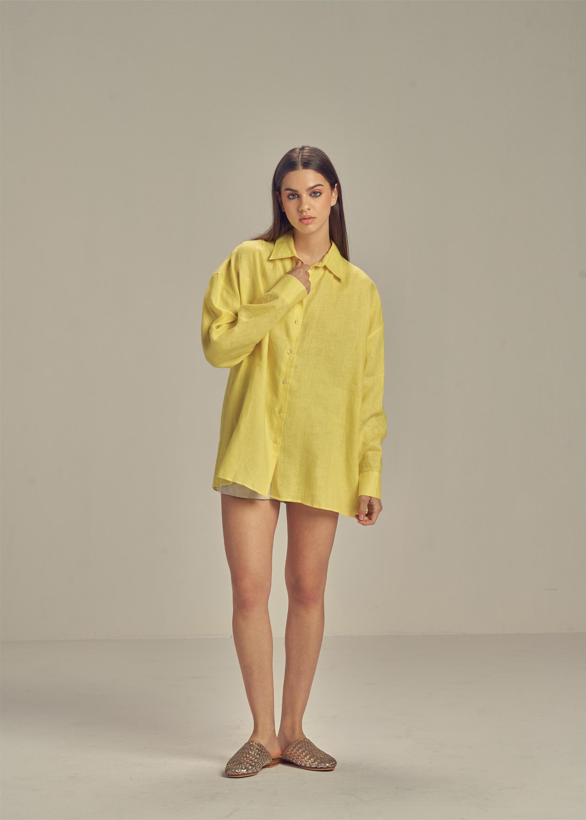 The Boyfriend oversized shirt,  adds a splash of personality to any outfit. This shirt is made from soft linen and tailored to an oversized silhouette for a laidback feel and offers a comfortable fit while exuding effortless style with its vibrant print.