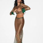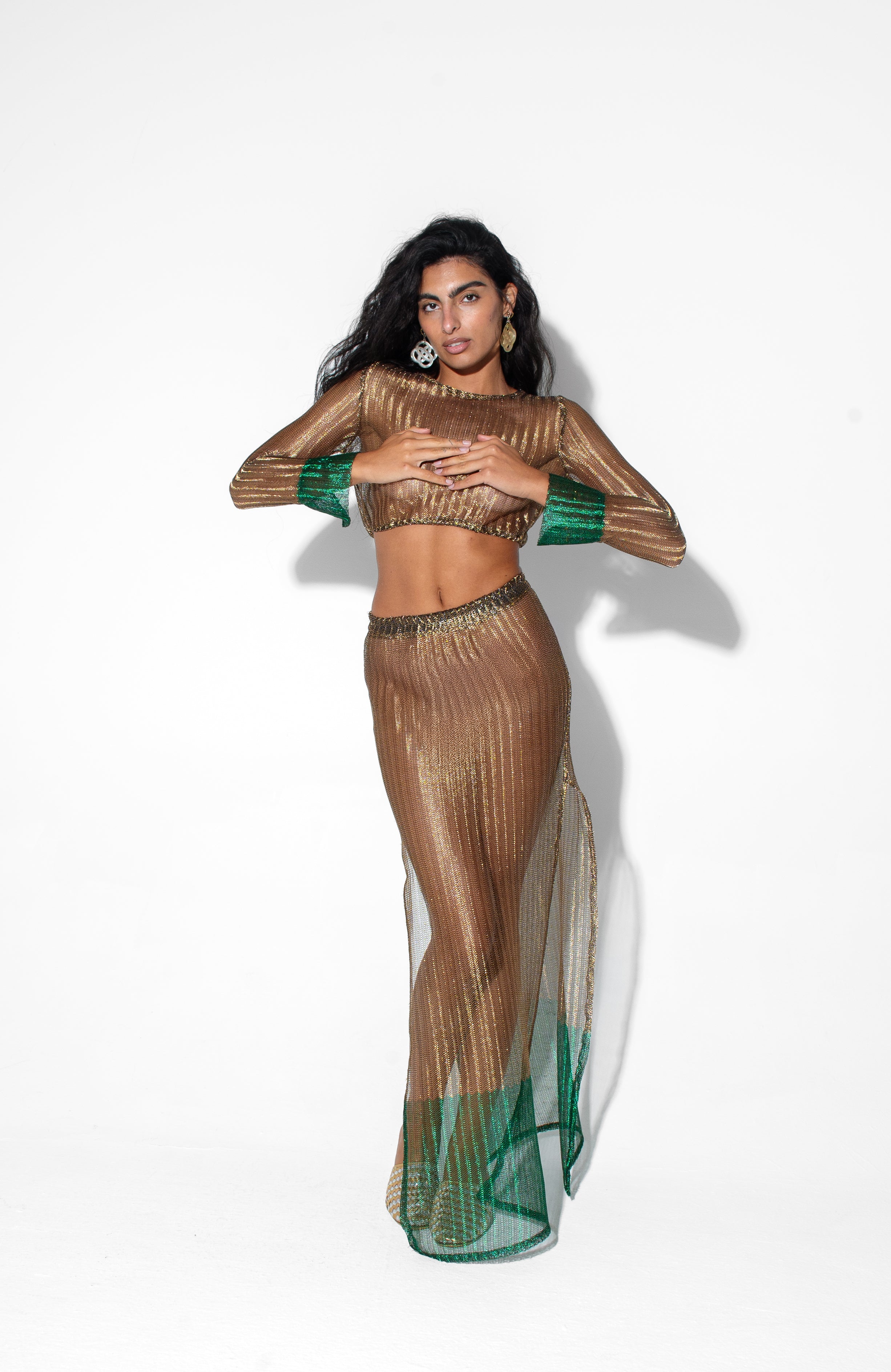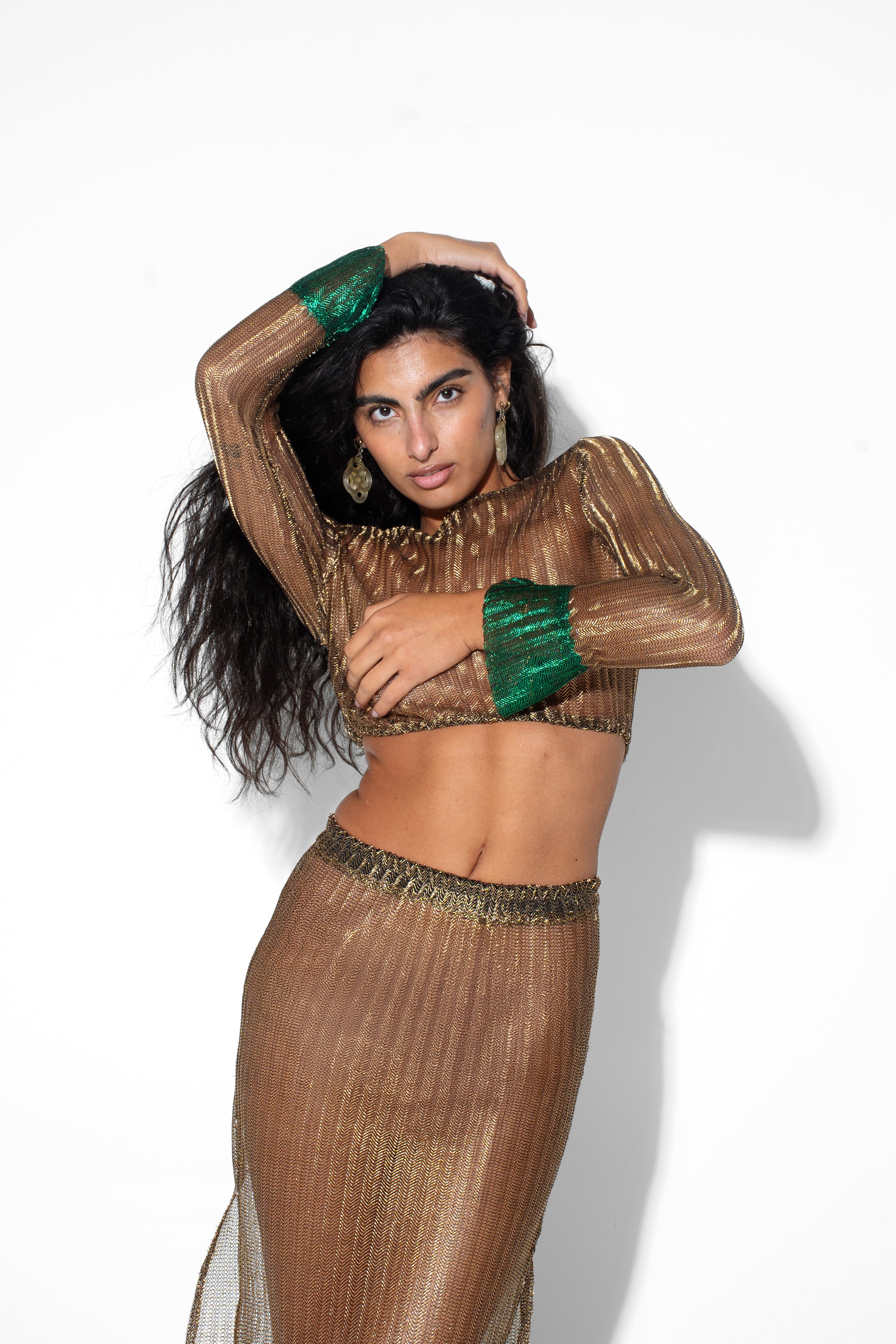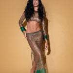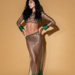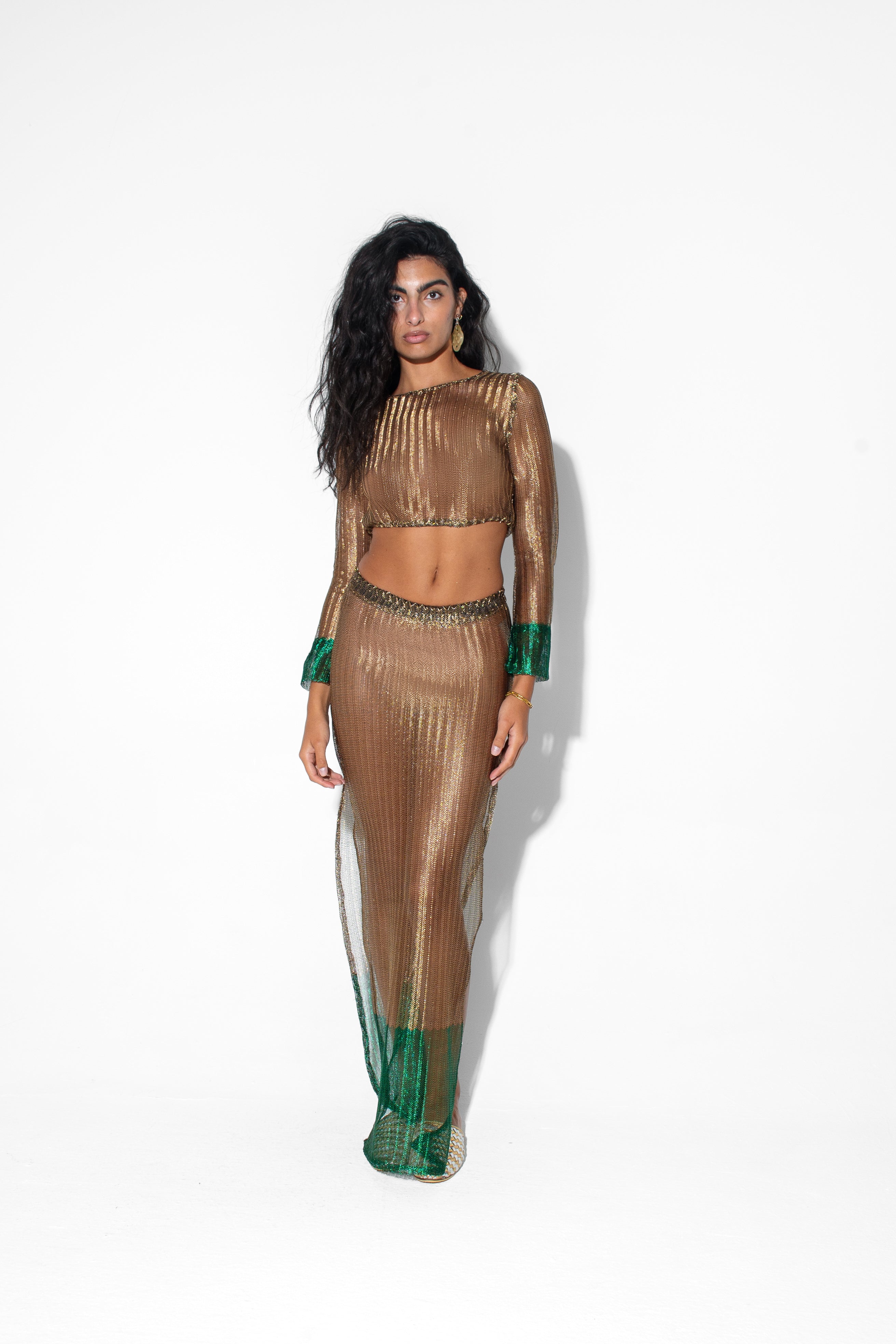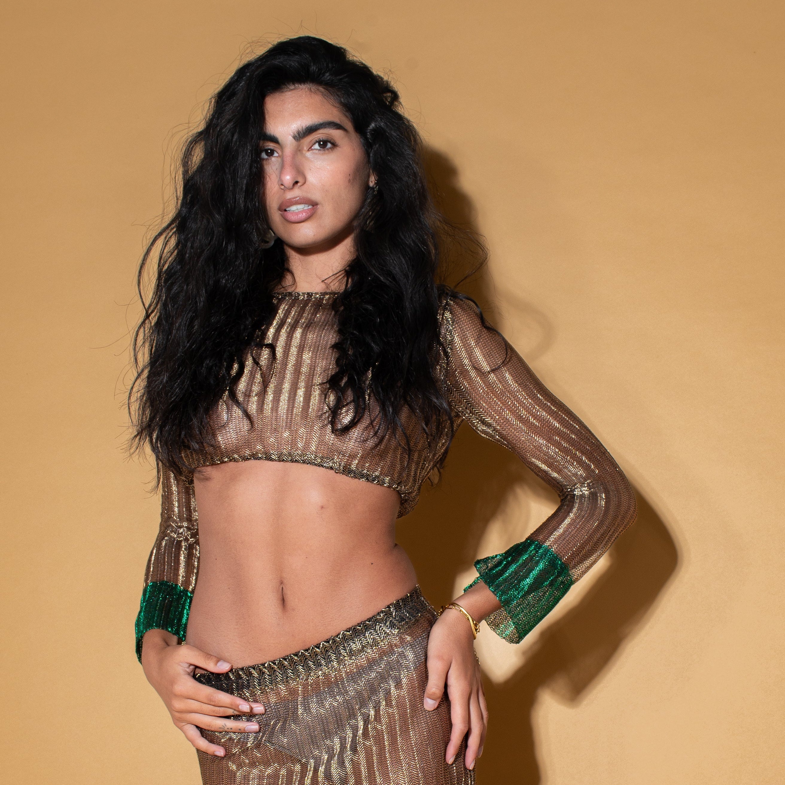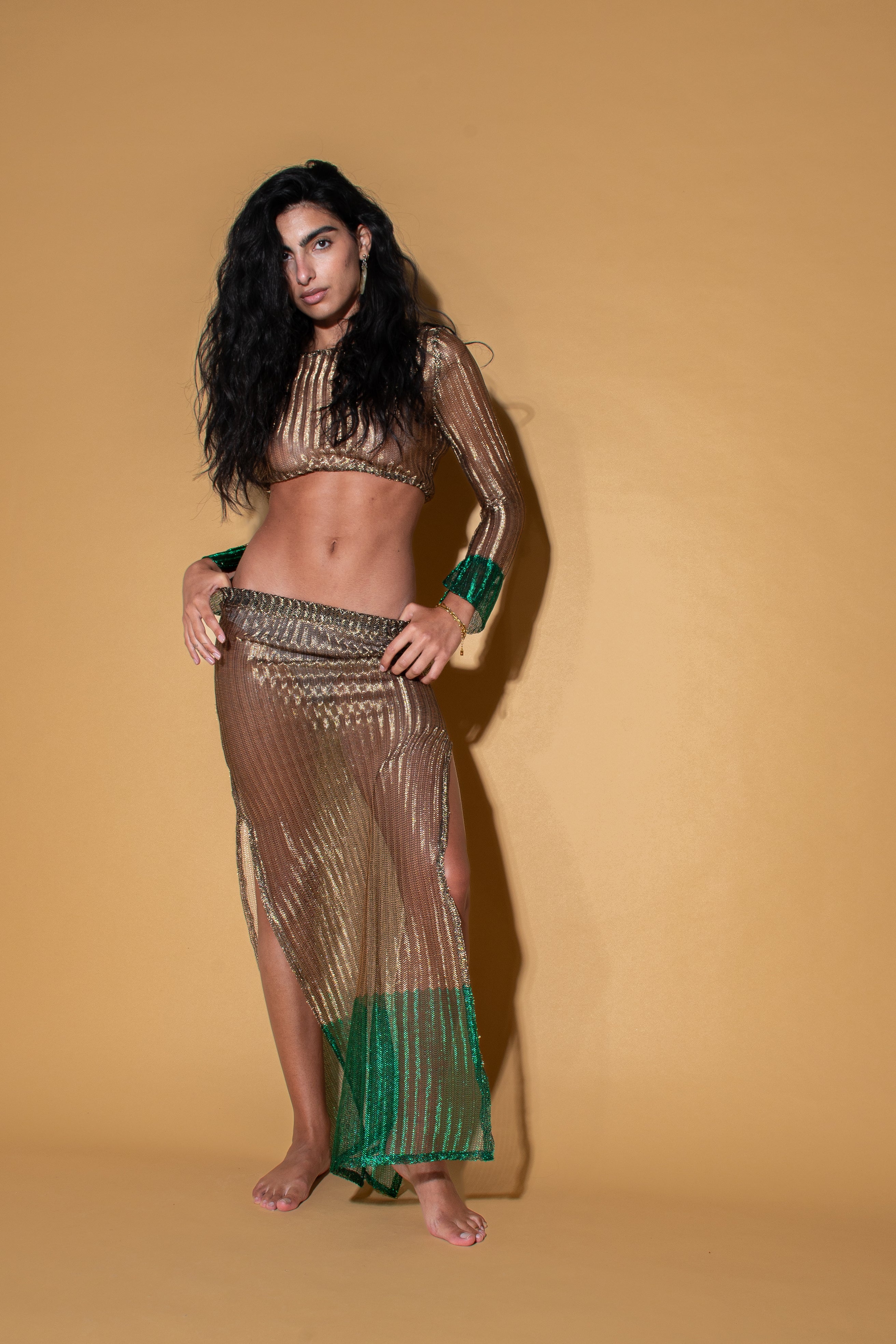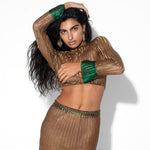The "Amore" ensemble is made from luxurious and stretchy Metalica-jersey fabric, perfectly accentuating your curves. Complete with dazzling embellishments that shine at every move, this set is perfect for beach outings and summertime celebrations. Just add some bling and you're ready to party!