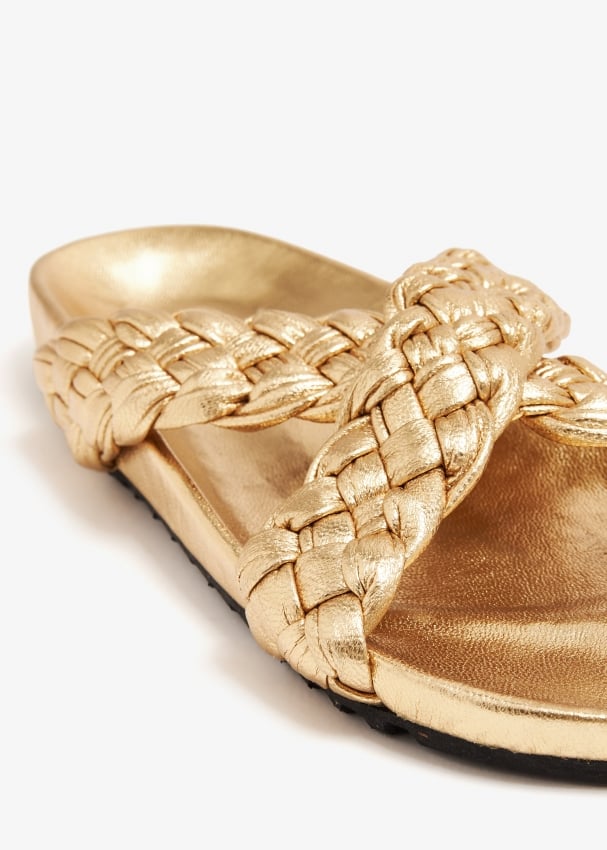 Welcome a gold fresh twist on the classic slipper design with this handwoven footwear from Cecilehob. Featuring the iconic hand-woven lambskin leather, these shoes offer absolute comfort whenever you go. Style with a T-shirt and a pair of jeans or your favourite modest wear or maxi dress.
