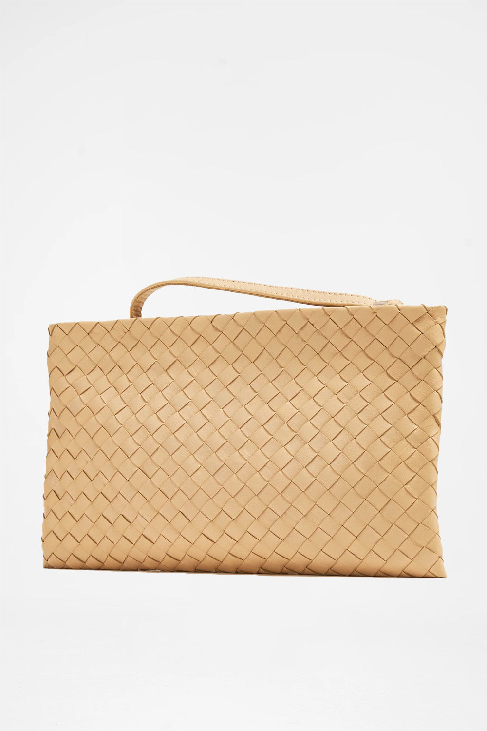 for modern sophistication, the hand-woven lambskin camel pouch offers the same practicality and elegance as its beige counterpart. Compact, stylish, and equipped with a detachable wristlet, it’s perfect for day-to-night transitions. For women’s and men’s