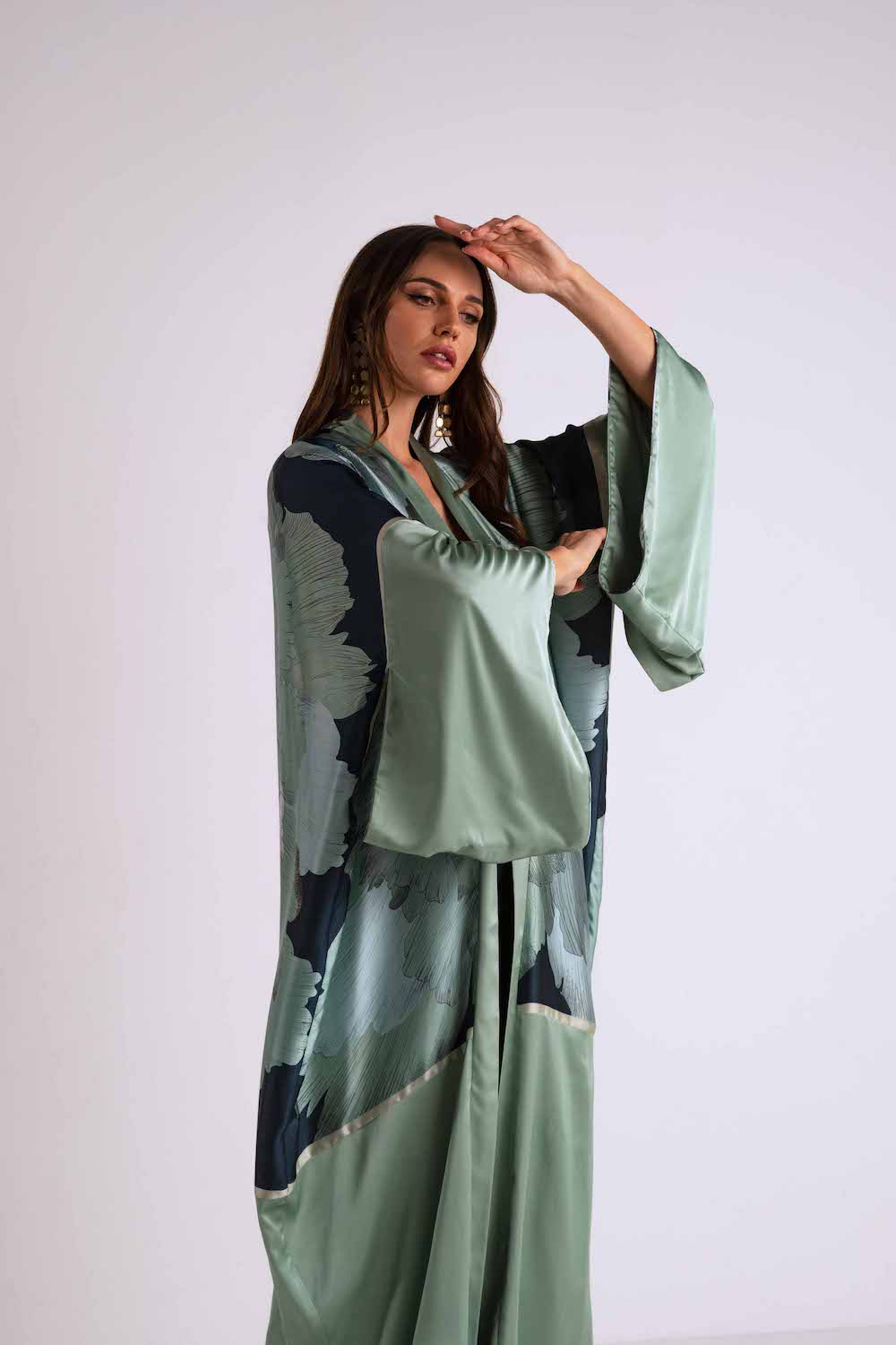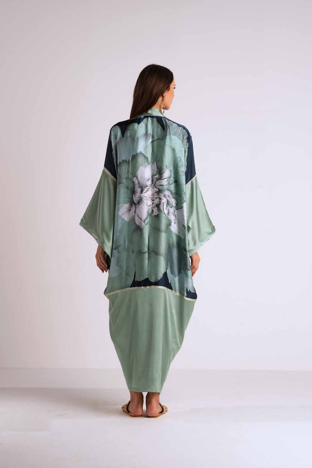 Each Kimono of this collection reflects the gentle sway of the breeze, the rhythm of waves, and the allure of roses. Explore luxury designs on your skin. It's made of Japanese silk and satin. It is the ideal piece for your luxury resort vacation.