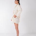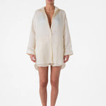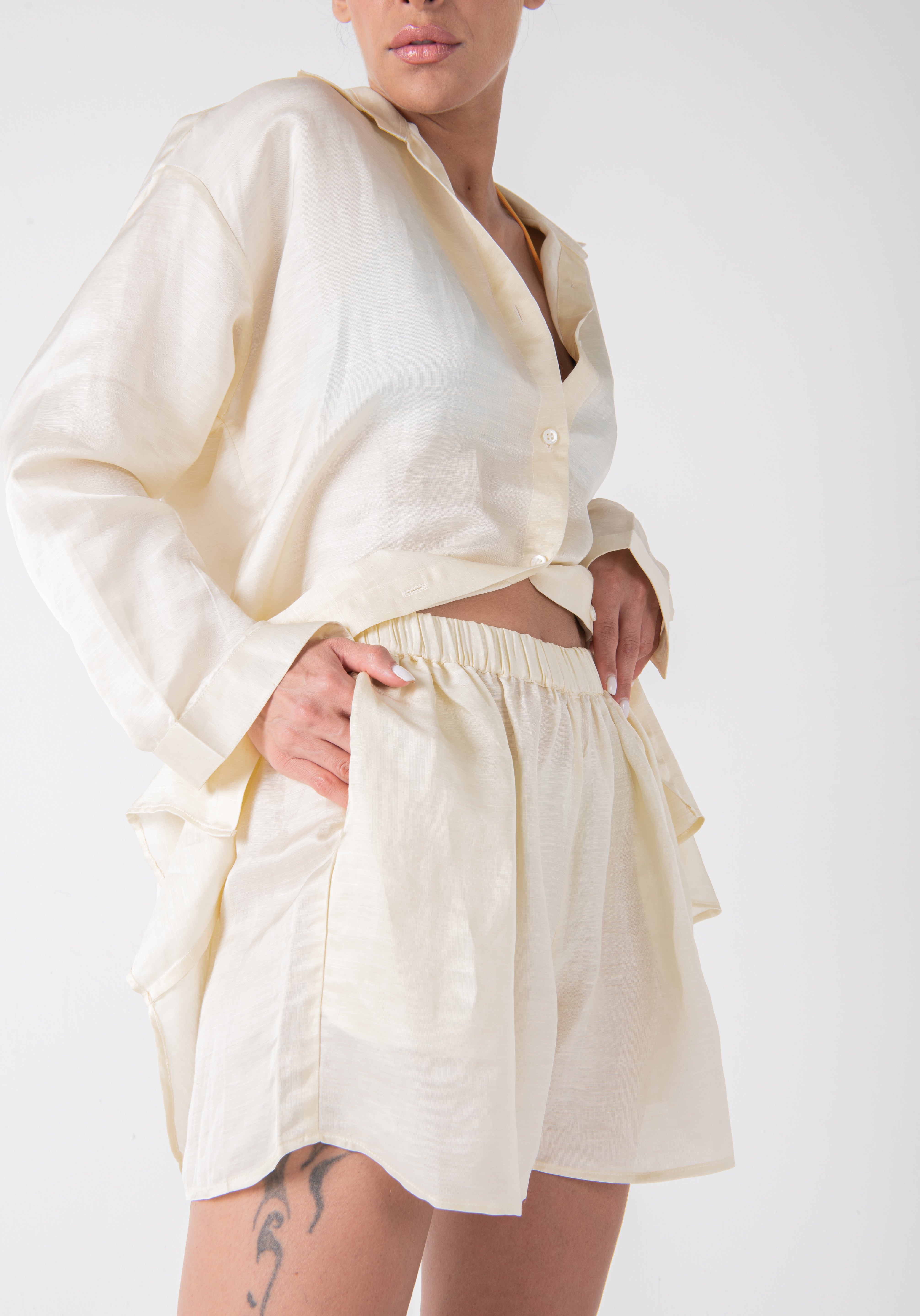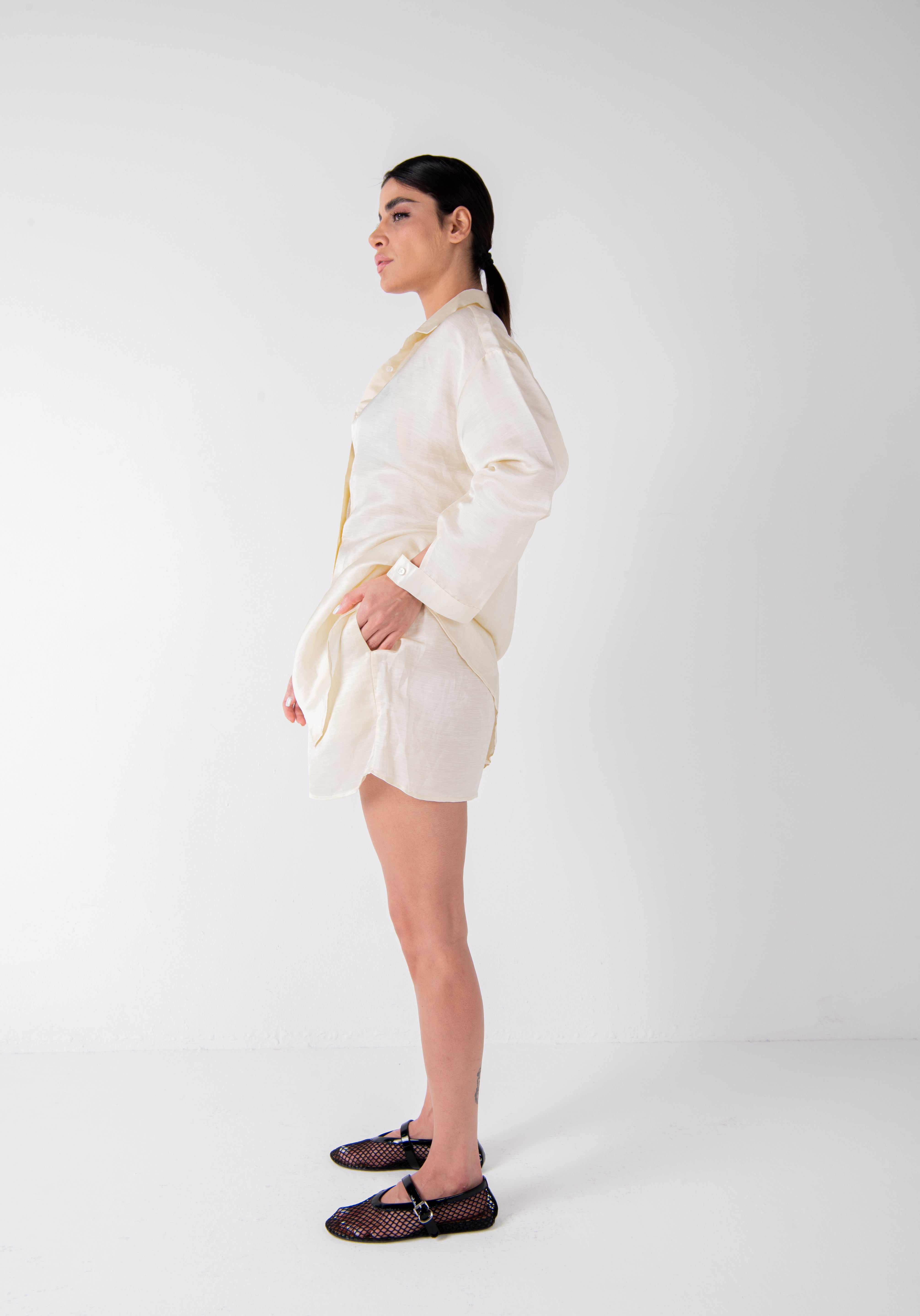 With pool parties and yacht cruises on the horizon, you'll need breezy options to keep up. The Sea Breeza cover-up shirt is the perfect investment piece. It's crafted from pure silk linen and cut to a relaxed silhouette, ensuring a comfortable, non-clinging fit. Shorts are just what you need for easygoing days. They feature an elasticated waistband for a comfortable fit. Layer them over your favorite bikini after a refreshing dip in the pool.