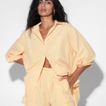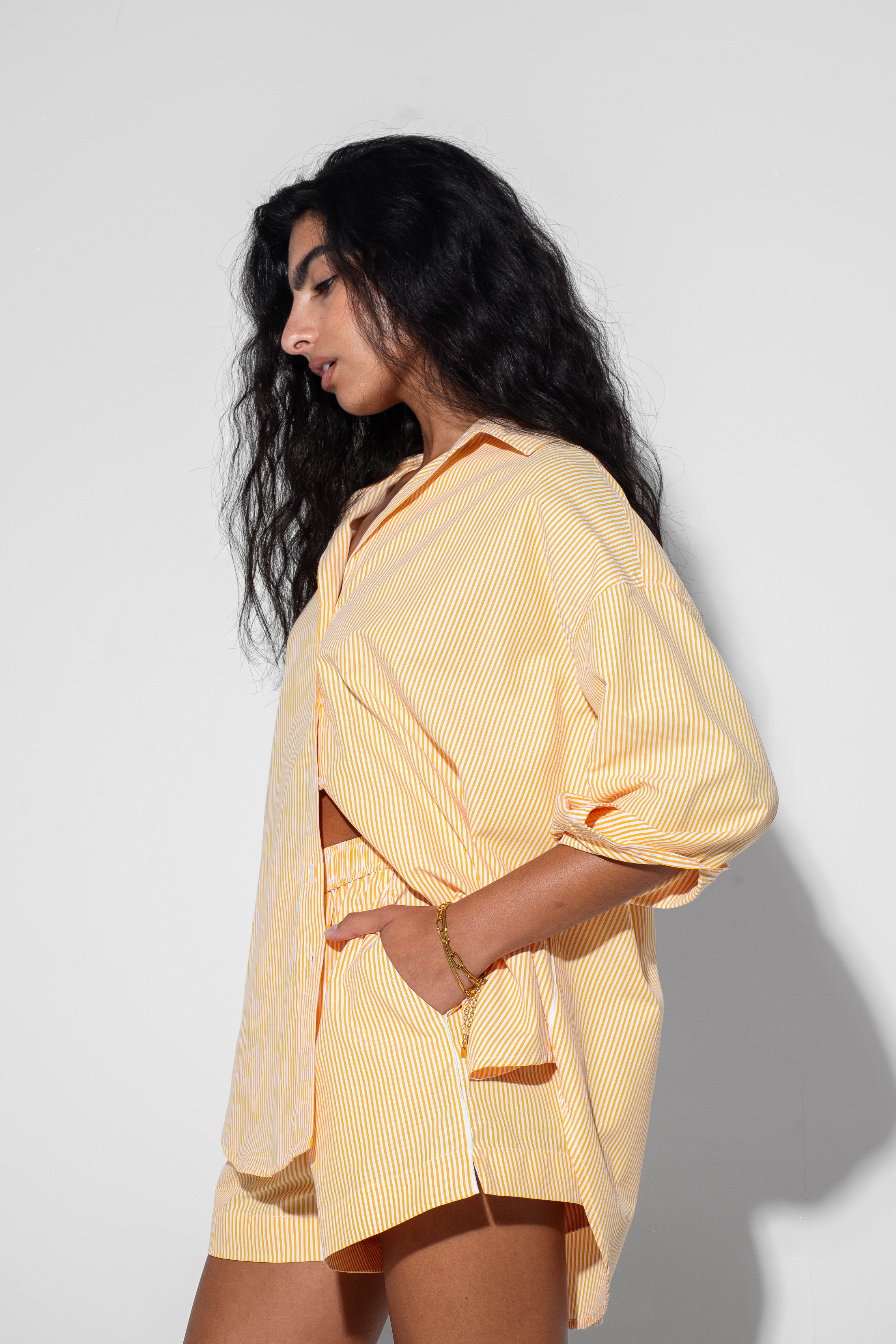 The Surf Club Set effortlessly takes you from lazy lounging to chill coffee chats. It showcases an oversized top and shorts made from eco-friendly cotton poplin, providing airy ease for extended relaxation. Ideal for all-day wear.